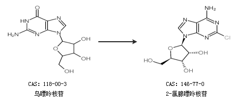 2.通过鸟嘌呤核苷合成2-氯腺嘌呤核苷