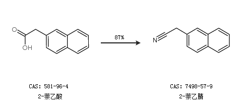 2.通过2-萘乙酸合成2-萘乙腈,收率约87%;
