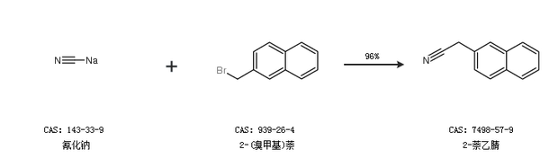 1.通过氰化钠和2-(溴甲基)萘合成2-萘乙腈,收率约96%;