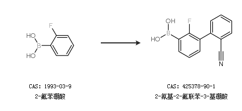 2.通过2-氟苯硼酸合成2-氰基-2-氟联苯-3-基硼酸