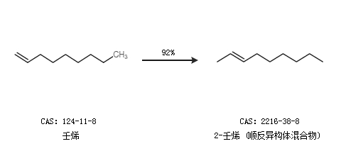 2.通过壬烯合成2-壬烯 (顺反异构体混合物),收率约92%;