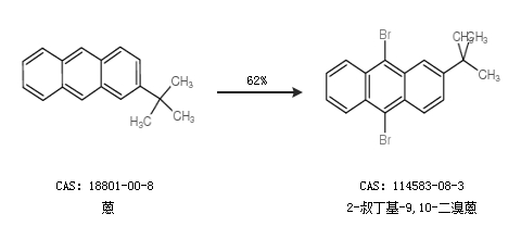 1.通过蒽合成2-叔丁基-9,10-二溴蒽,收率约62%;