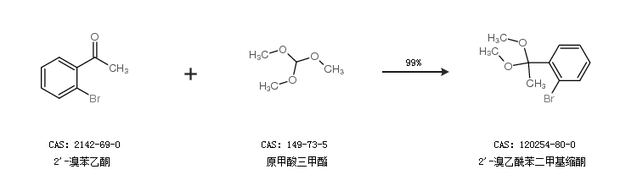 1.通过2''-溴苯乙酮和原甲酸三甲酯合成2''-溴乙酰苯二甲基缩酮,收率约99%;
