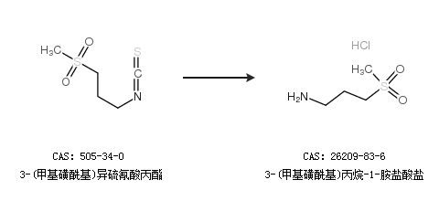 1.通过3-(甲基磺酰基)异硫氰酸丙酯合成3-(甲基磺酰基)丙烷-1-胺盐酸盐