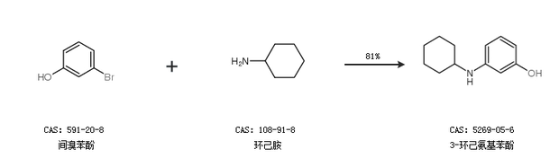 1.通过间溴苯酚和环己胺合成3-环己氨基苯酚,收率约81%;