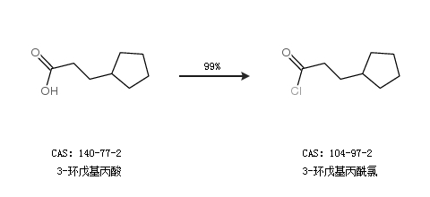1.通过3-环戊基丙酸合成3-环戊基丙酰氯,收率约99%;