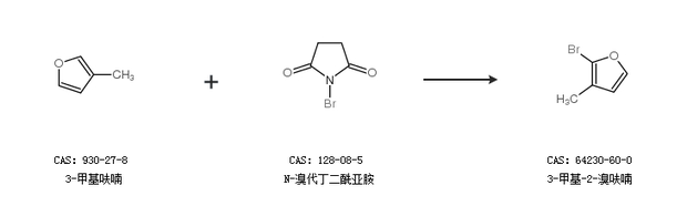 1.通过3-甲基呋喃和N-溴代丁二酰亚胺合成3-甲基-2-溴呋喃
