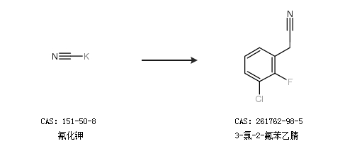 1.通过氰化钾合成3-氯-2-氟苯乙腈