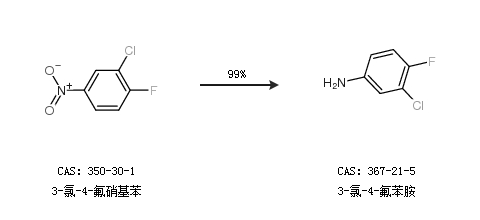 1.通过3-氯-4-氟硝基苯合成3-氯-4-氟苯胺,收率约99%;
