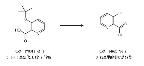 1.通过3-(叔丁基硫代)吡啶-2-羧酸合成3-巯基甲酸吡啶盐酸盐