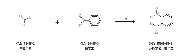 1.通过三溴甲烷和硝基苯合成3-硝基邻二溴甲苯,收率约16%;