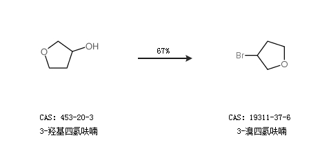 1.通过3-羟基四氢呋喃合成3-溴四氢呋喃,收率约67%;
