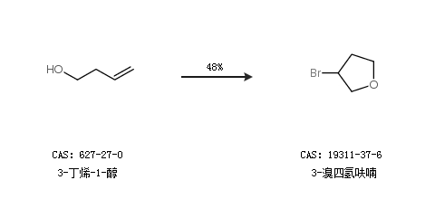 2.通过3-丁烯-1-醇合成3-溴四氢呋喃,收率约48%;