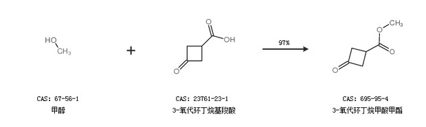 1.通过甲醇和3-氧代环丁烷基羧酸合成3-氧代环丁烷甲酸甲酯,收率约97%;