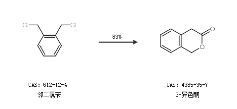 2.通过邻二氯苄合成3-异色酮,收率约83%;