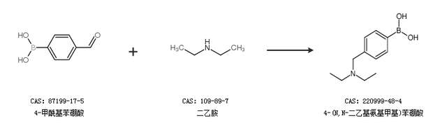 2.通过4-甲酰基苯硼酸和二乙胺合成4-(N,N-二乙基氨基甲基)苯硼酸
