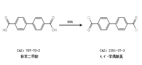 1.通过联苯二甲酸合成4,4''-苯偶酰氯,收率约99%;
