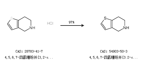 1.通过4,5,6,7-四氢噻吩并[3,2-c]吡啶盐酸盐合成4,5,6,7-四氢噻吩并[3.2-c]吡啶,收率约97%;