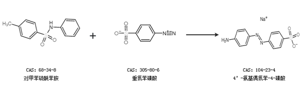 2.通过对甲苯硫酰苯胺和重氮苯磺酸合成4’-氨基偶氮苯-4-磺酸