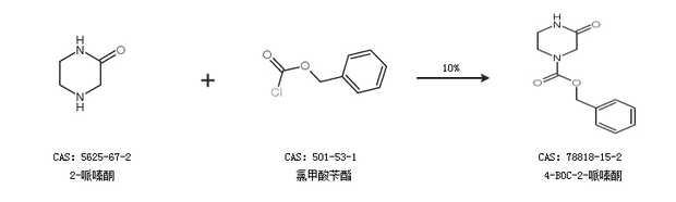 1.通过2-哌嗪酮和氯甲酸苄酯合成4-BOC-2-哌嗪酮,收率约10%;