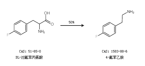 2.通过DL-对氟苯丙氨酸合成4-氟苯乙胺,收率约50%;