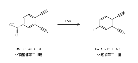 1.通过4-硝基邻苯二甲腈合成4-氟邻苯二甲腈,收率约85%;