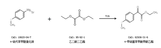 2.通过4-硫代苯甲醚溴化镁和乙二酸二乙酯合成4-甲硫基苯甲酰甲酸乙酯,收率约71%;