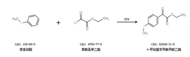 1.通过茴香硫醚和草酰氯单乙酯合成4-甲硫基苯甲酰甲酸乙酯,收率约82%;