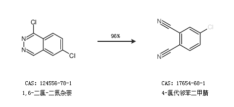 1.通过1,6-二氯-二氮杂萘合成4-氯代邻苯二甲腈,收率约96%;