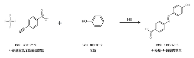 1.通过4-硝基重氮苯四氟硼酸盐和苯酚合成4-羟基-4-硝基偶氮苯,收率约86%;