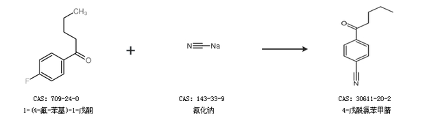 1.通过1-(4-氟-苯基)-1-戊酮和氰化钠合成4-戊酰氯苯甲腈