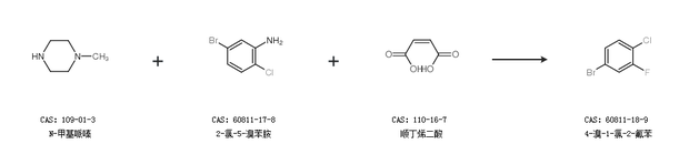 1.通过N-甲基哌嗪、2-氯-5-溴苯胺和顺丁烯二酸合成4-溴-1-氯-2-氟苯