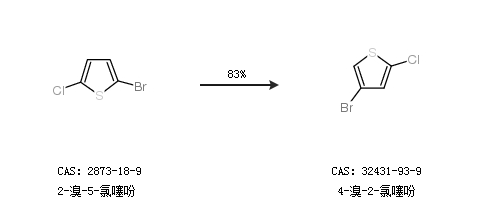 1.通过2-溴-5-氯噻吩合成4-溴-2-氯噻吩,收率约83%;