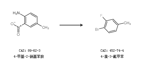 2.通过4-甲基-2-硝基苯胺合成4-溴-3-氟甲苯