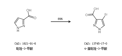 2.通过吡唑-3-甲酸合成4-溴吡唑-3-甲酸,收率约89%;