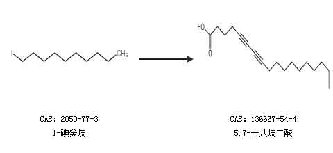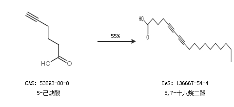 1.通过5-己炔酸合成5,7-十八烷二酸,收率约55%;