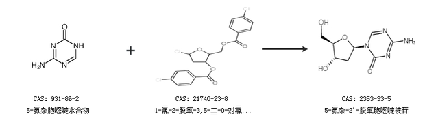 2.通过5-氮杂胞嘧啶水合物和1-氯-2-脱氧-3,5-二-O-对氯苯甲酰基-D-核糖合成5-氮杂-2''-脱氧胞嘧啶核苷