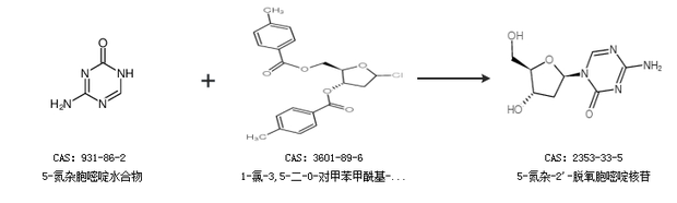 1.通过5-氮杂胞嘧啶水合物和1-氯-3,5-二-O-对甲苯甲酰基-2-脱氧-D-呋喃核糖合成5-氮杂-2''-脱氧胞嘧啶核苷