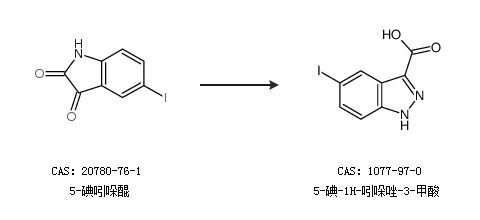 2.通过5-碘吲哚醌合成5-碘-1H-吲哚唑-3-甲酸