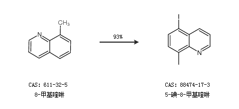 1.通过8-甲基喹啉合成5-碘-8-甲基喹啉,收率约93%;
