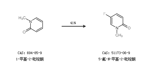 1.通过1-甲基-2-吡啶酮合成5-氟-N-甲基-2-吡啶酮,收率约41%;