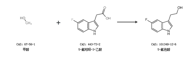 2.通过甲醇和5-氟吲哚-3-乙酸合成5-氟色醇