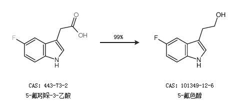 1.通过5-氟吲哚-3-乙酸合成5-氟色醇,收率约99%;