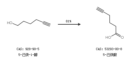 1.通过5-己炔-1-醇合成5-己炔酸,收率约81%;