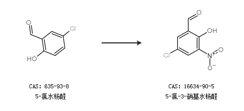 1.通过5-氯水杨醛合成5-氯-3-硝基水杨醛