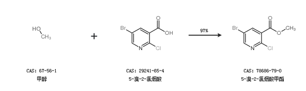 2.通过甲醇和5-溴-2-氯烟酸合成5-溴-2-氯烟酸甲酯,收率约97%;