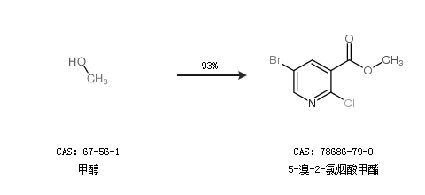 1.通过甲醇合成5-溴-2-氯烟酸甲酯,收率约93%;