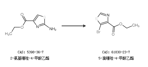 2.通过2-氨基噻唑-4-甲酸乙酯合成5-溴噻唑-4-甲酸乙酯