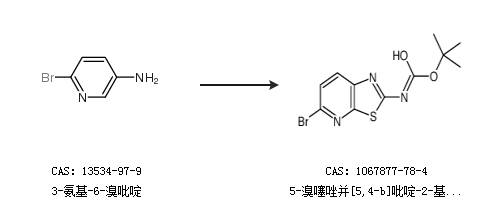 2.通过3-氨基-6-溴吡啶合成5-溴噻唑并[5,4-b]吡啶-2-基氨基甲酸叔丁酯