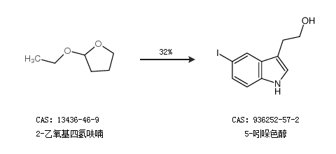 1.通过2-乙氧基四氢呋喃合成5-吲哚色醇,收率约32%;